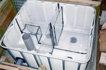 De schotten die de bak in kamers verdelen zijn gemonteerd en afgekit.