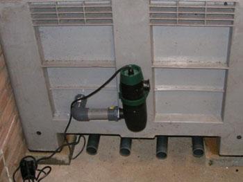Op deze foto zie je de leidingen van de afvoeren en de inmiddels geinstalleerde uvc.