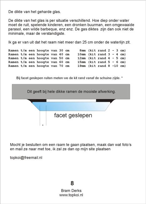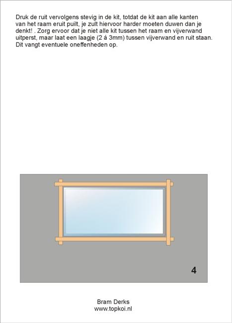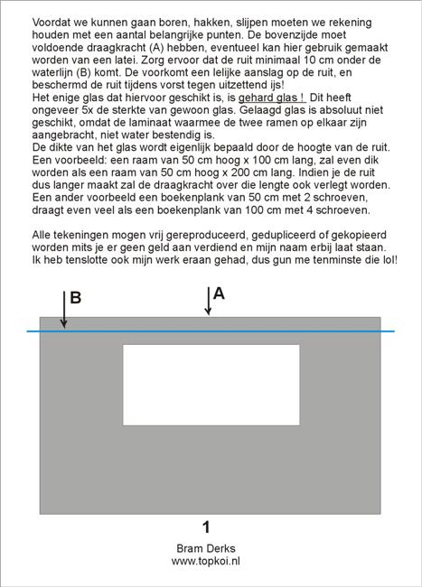 Ik kom regelmatig mensen op internet tegen die advies vragen op forums hoe ze het beste een raam in hun vijverkunnen maken, en wat voor een glas ze moeten gebruiken. De meeste antwoorden die daar gegeven worden zijn volslagen "IDIOOT !" Ik zelf zit meer dan 10 jaar in het glas, en heb vaker ramen "zonder frame" in vijvers gemaakt. Er zijn uiteraard meerderemanieren om een ruit in je vijver te maken. In het voorbeeld gaan we uit van een volledig vlakke stevige vijver-wand van beton of polyester, dus geen Oh Ja wat doe ik in glas ? -url-
