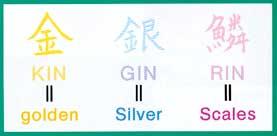 Kinginrin De naam Kinginrin wordt gegeven aan eender welke koi met gouden (KINRIN) of zilveren (GINRIN) schubben op de rug. De Kinginrin-schubben liggen netjes gerangschikt in twee, drie of meer glinsterende rijen langs elke zijde van de rug. Glinsterende schubben die zich bevinden in een rode zone geven de indruk een gouden kleur te hebben, terwijl diegenen die in de witte en zwarte patronen liggen zilver lijken te zijn.