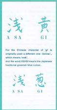 1. Konjo Asagi Deze leunt het dichtst aan bij de wilde karper. De diepblauwe kleur is zuiver en de extreem diepe indigo kleur reikt tot aan de rand van de schub. Bij KONJO ASAGI hebben de schubben een zuivere indigo blauwe kleur. 2. Narumi Aasagi NARUMI ASAGI is de oude naam van een klein gedeelte van de stad NAGOYA. De donkerblauwe kleur is bleker dan bij Konjo Asagi. Het indigoblauw is donker in het midden van de schub en wordt bleek aan de schubrand. Dit is de werkelijke Asagi.