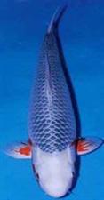 5. Taki Asagi Deze heeft een waterval van wit die langs het lichaam loopt tussen het blauw op de rug en het rood op de flanken. Zowel Asagi Sanshoku als Taki Asagi zijn vandaag de dag nauwelijks te zien. Tegenwoordig zien we af en toe Asagi met enkele ginrinschubben op de fukurin. Dit helpt show-Asagi een beter effect te geven. Het gevolg is dat koi van dit type naar een hogere rang worden verheven. Het is werkelijk verschillend van Ginrin in zijn normale verschijning en is niet getekend om de koi in de Ginrin groep te plaatsen op de show. Voorzichtigheid dient dus geboden om geen verwarring te stichten.