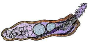 Hier zie je een zeer duidelijke tekening. Acanthocephala zijn langgerekte, cilindrische, parasitaire wormen werd vroeger tot de klasse van Nematoda gerekend. Er zijn bij benadering 400 soorten. De haakwormen kenmerken zich door een intrekbare langwerpig kopdeel met rijen haken, waarmee ze zich vastzetten, waarvan de volwassen worm in de darmen van vissen zit. Dit is een artikel van derden Koieagle: Alle rechten voorbehouden