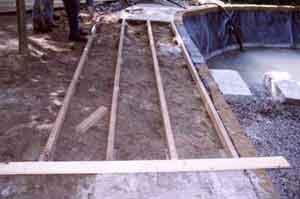 In het filtergedeelte wordt het pomphuis geplaatst. Een extra beschermvlies vermijdt beschadiging van de rubberfolie. Luchtslangetjes en elektrische leidingen worden tot bij het filtergedeelte gebracht. Dit pomphuis is een zo breed mogelijke pvc buis waarin we gaten boren. Hierin wordt de pomp geplaatst die het water wegzuigt. Terras Naast een zwemvijver hoort ook een plaats om uit te rusten, om te vertoeven, om na te genieten. Veelal wordt een in de nabijheid van een zwemvijver een terras aangelegd.
