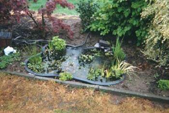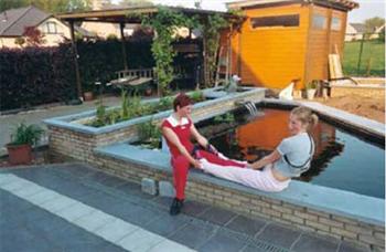 Maar in het voorjaar van 1998 storten we ons met volle overgave op de tuin. Omdat ik al enkele jaren “verliefd†was op de koi vijver van mijn vriend zijn vader wou ik ook absoluut een vijver in de tuin. Nu moest ik het op aanraden van mijn vrouwtje en vanwege de beperkte gezins financiën wel iets bescheidener aanpakken. Vandaar de start met het kleine water bakje van ongeveer 900L. Uiteindelijk waren we best wel trots op het resultaat.