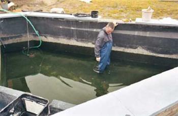 De vijver nog een keer volledig leegtrekken en een grondige schoonmaakbeurt geven. Zeker alle resten moortel en voegspecie verwijderen. De wanden nogmaals afspuiten met de hoge druk en dan is hij uiteindelijk klaar voor zijn nieuwe bewoners.