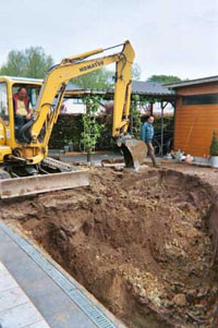 Al met al viel dit, zo zou later blijken, nogal mee. Ongeveer een 40 m³ werd er afgevoerd. Blijkbaar zet grond behoorlijk uit in volume bij het uitgraven. Gelukkig woont de broer van de graver hier enkele huizen verder. Deze kon nog wat grond gebruiken om zijn tuin op te hogen. Op deze manier kwamen we er beiden relatief goedkoop vanaf.